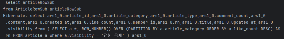 article를 사용하여 조회하는 방식이 아닌 ArticleRowSub을 통해 조회하면 from절에 서브쿼리로 사용하는 것과 같은 기능을 동작하게 됩니다.