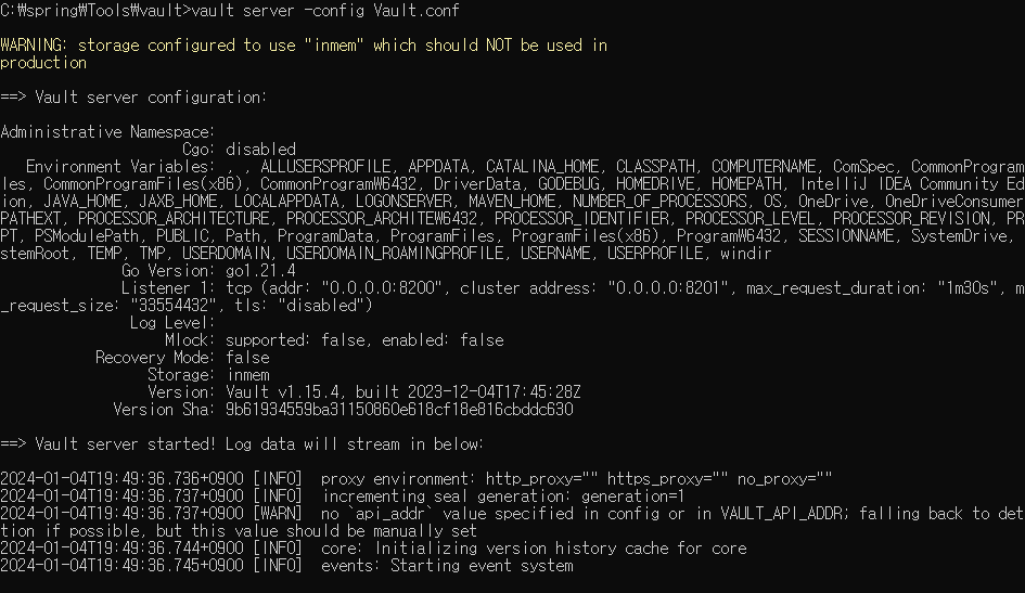 ※ 현재 설정한 방식은 메모리방식이여서 실행중은 볼트 터미널창을 닫게되면 설정한 정보들이 초기화되서 다시 시작해야한다. 서버에 적용하고싶다면 공식 문서를 참고해서 하면 충분히 할수 있다. ※