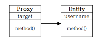 사진과 같이 엔티티와 똑같은 형태를 가진 프록시 객체가 생성되며 실제 객체에서 위임(delegate)를 해주게된다.