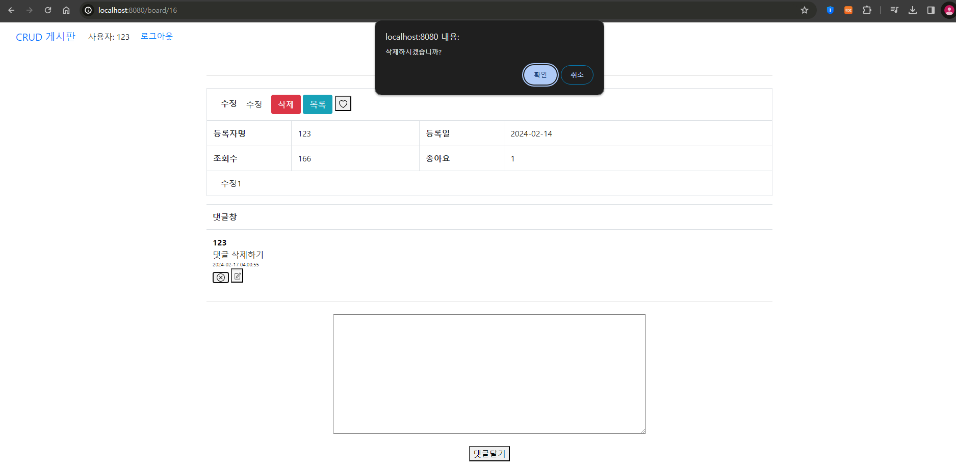 작성한 댓글을 삭제하는 기능을 구현해 보자!