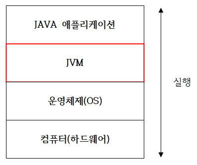 JVM이란 Java Virtual Machine을 줄인 것으로 영어를 해석하면 자바 가상 머신이다. 즉 자바를 실행하기 위한 가상 머신이라고 생각하면 된다. 자바를 사용해 개발을 하게 되면 JVM에서만 실행된다. 만약 JVM이 설치되어있지 않으면 자바로 작성한 파일들이 실행되지 않는다. 자바를 사용하기 위해서는 꼭 JVM이 필요하다.