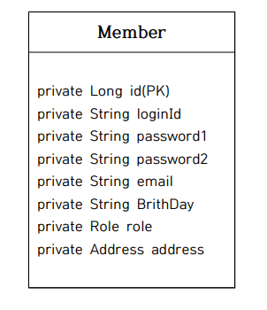 public MemberDto( String loginId, String username, String password1, String password2, String email, String brithDay, Role role, Address address) {