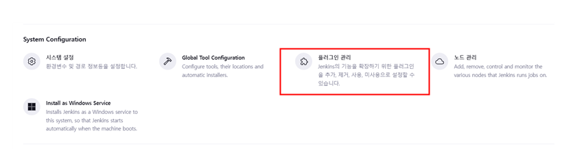 대시보드 -> Jenkins관리 -> 플로그인 관리 클