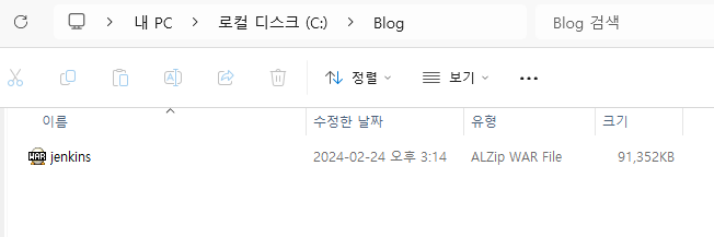 해당 페이지로 이동해 2.7.1 다운로드하자 그러면 jenknins.war 파일이 다운로드하여진 것을 볼 수 있다.