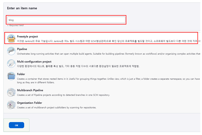 Freestyle project선택 후(간단한 변경감지만 하는 것을 연습하는 포스팅이기 때문에 선택)