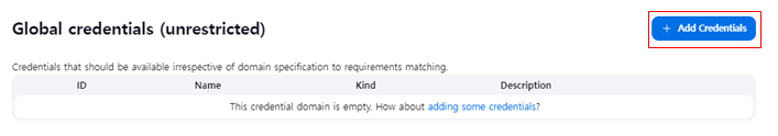 Add Credentials 클릭