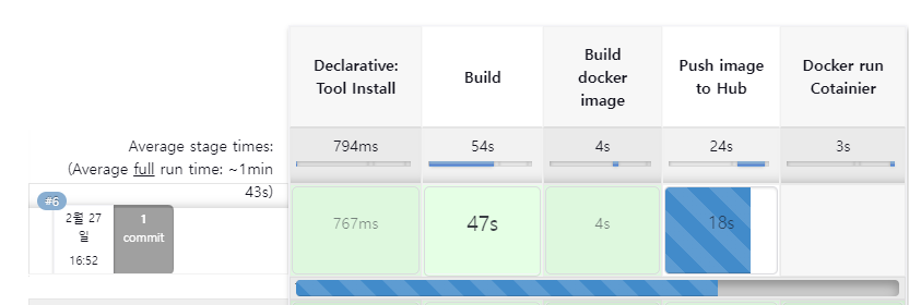 그럼 JENKINS는 PSUH 기록을 감지해 자동으로 실행되는 것을 볼 수 있다.