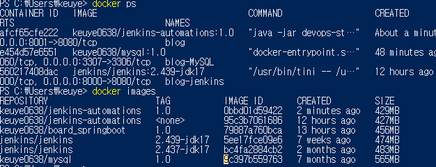 image와 container이 정상적으로 올라오는 것을 볼 수 있습니다.